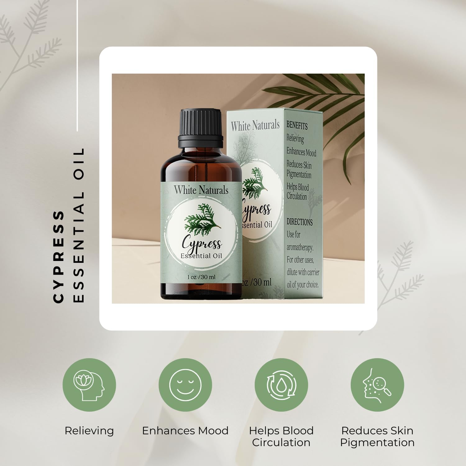 Cypress Essential Oil, 100% Pure & Natural Therapeutic Grade Essential Oil for Aromatherapy Diffusers, Undiluted for Healthy Skin & Hair Growth, Ideal for Bedroom, Living Room, Office 1oz