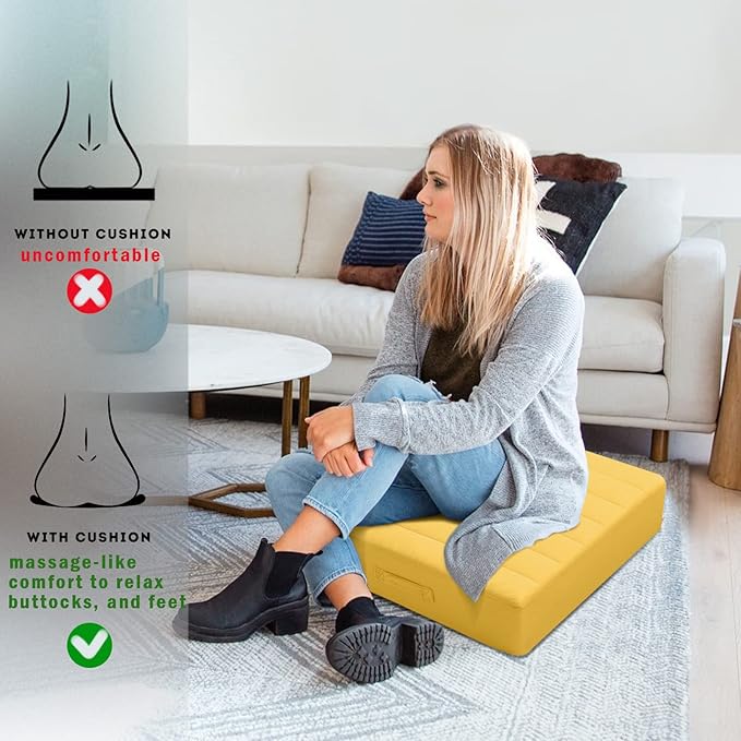 MeMoreCool Large Square Floor Pillow, Yellow Meditation Cushion with Thick Foam and Soft Tufted Washable Cover, Big Floor Seat for Adults, Kids, Sitting, and Yoga, 24-Inch