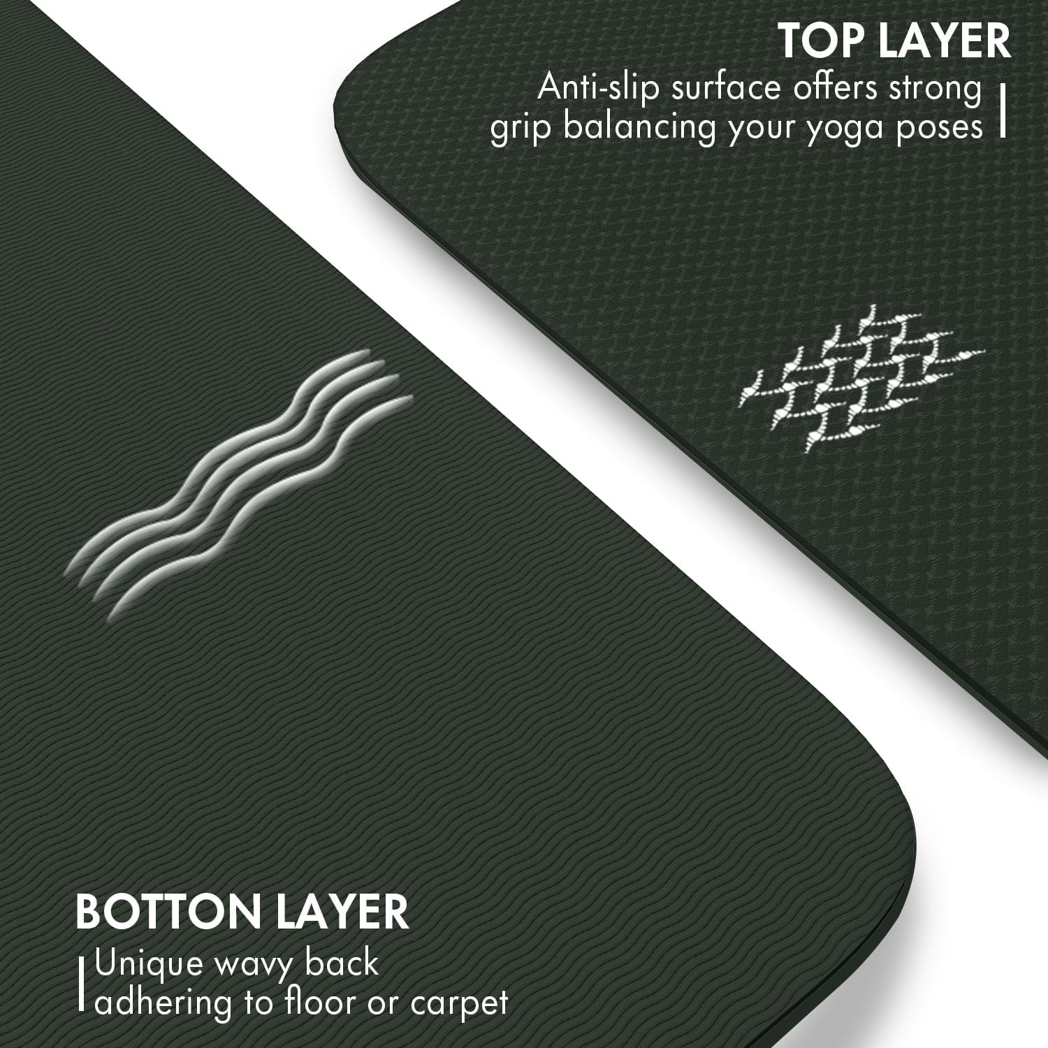 - DOUBLE NON-SLIP DESIGN: Two side matching hot melt process guarantees tear resistance double texture design makes it non-slip, beautiful and provides excellent grip and customization to every yoga user.