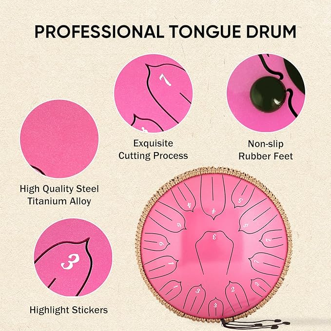 - Widely Used: Steel tongue drum 15 note can be used in a variety of occasions, suitable for concert accompaniment, yoga meditation chakra, music education, spiritual healing; Steel drums perfect for praying for peace and good luck for your family