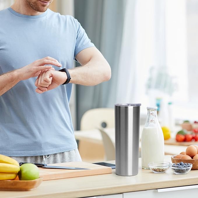 20 oz Skinny Tumbler with Lid and Straw,Stainless Steel Vacuum Insulated Tumbler Cup Double Wall Leak-proof Coffee Mug,Travel Thermal Water Tumbler for Office,Outdoor(Silver,1)