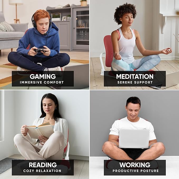 - 【Experience Unmatched Comfort with Dual-Backrest Design】: Embrace the perfect seating solution designed specifically for floor-sitting lovers. . The two backrests move independently to hug your back’s unique shape and reduce pressure on your lower back.