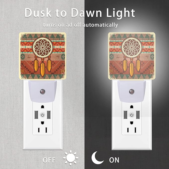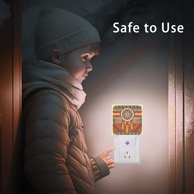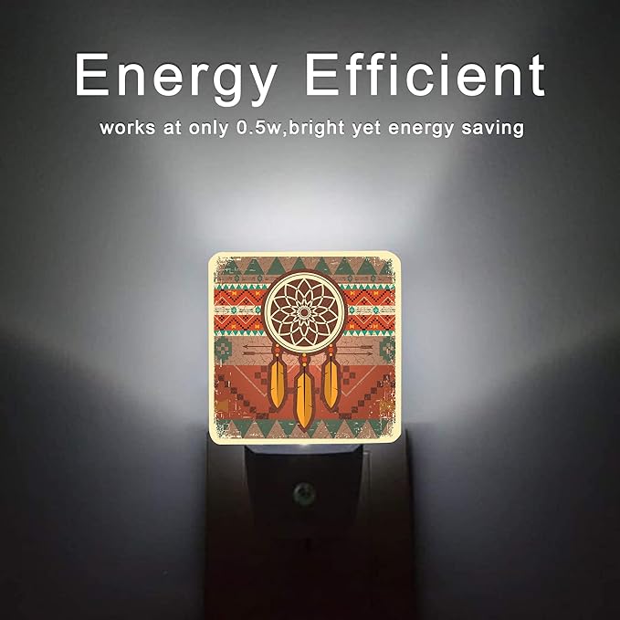 Dream Catcher Night Light,Ethnic Ornament Plug-in Night Lights with Dusk-to-Dawn Sensor for Stairway/Hallway/Bedroom 0.5W Sleep Friendly lamp for Women/Girls/Boys Gift