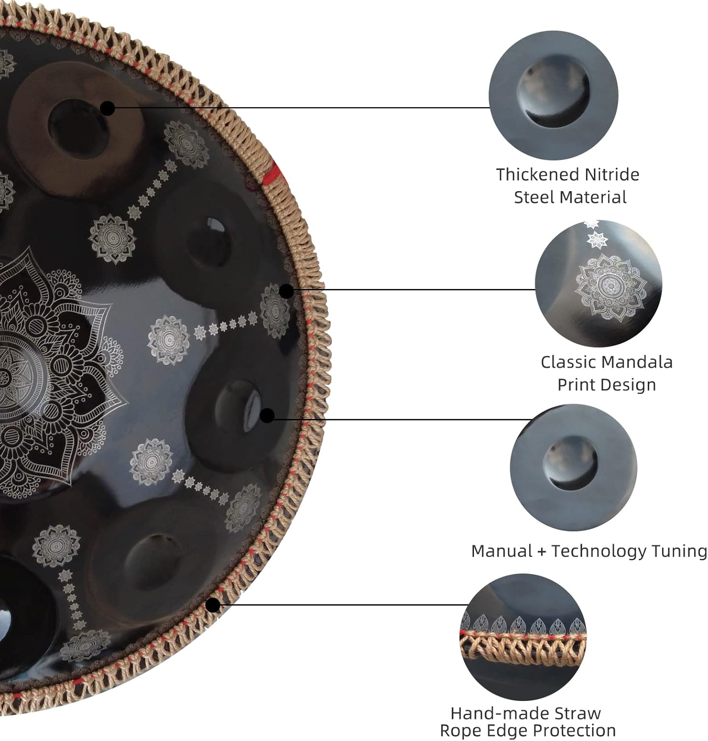 - 1.【Clean Clear Sounds】As we all know,handpan is a very precious commodity with an ethereal and wonderful sound,Kelisiting focuses on handpan design and production,our handpan is produced with high-quality nitrided steel materials,and pays more attention to clean at the sound level clear effect,beautiful and ethereal sound