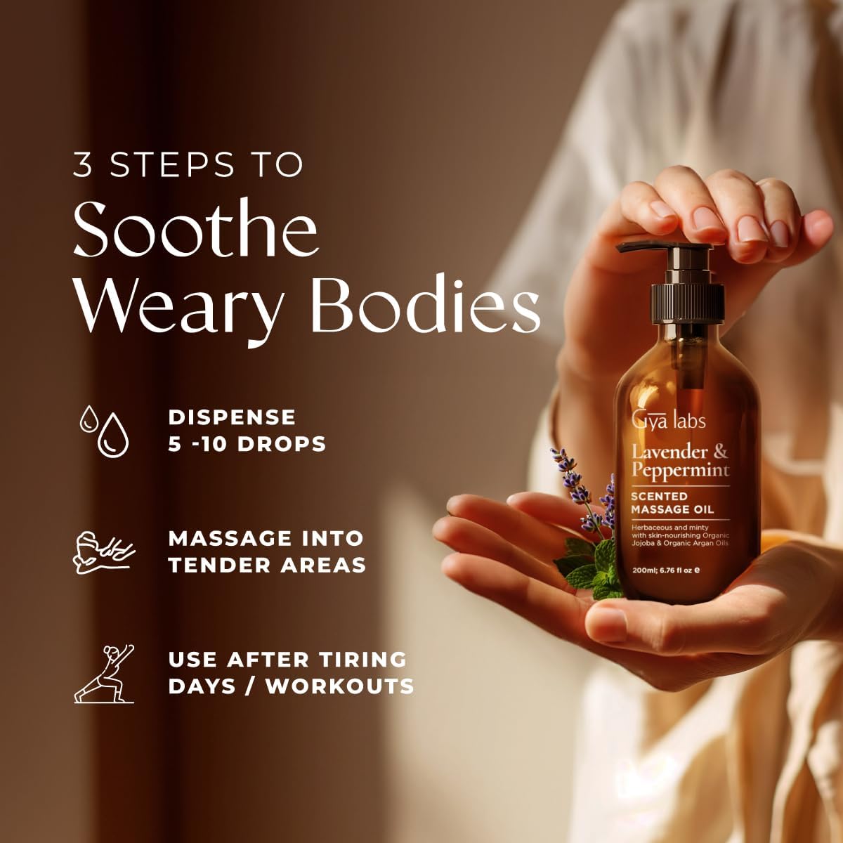 - Delivers body comfort. A massage oil for sore muscles, our lavender and peppermint massage oil is a soothing hero for overworked bodies. Warm up this warming massage oil in a warmer before massaging on tender areas for blissful comfort.