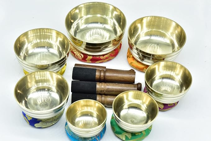 Set of 7 Chakra singing bowl- All in one- Handmade, healing bowls from Nepal-Meditation Bowl,Healing, Great for Meditation, Yoga, Sound Bath, Mindfulness, Relaxation ~ Cushion, Wooden Mallet