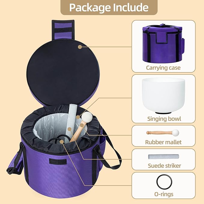 - Complete Meditation Kit: Our crystal singing bowl set, which includes 1 bowls tuned to the 432hz(A4) , comes with 1 carrying cases, 1 suede strikers, 1 rubber mallets, and 1 O-rings, offers a harmonious sound experience for deep relaxation and spiritual connection during meditation.