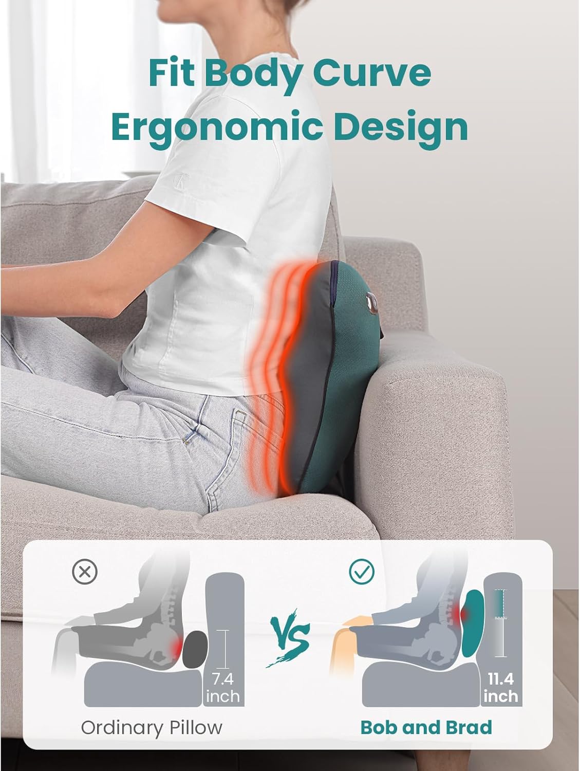 - Upgraded Design for Full Body Relaxation - The BOB AND BRAD EZBack shiatsu back and neck massager with heat adopts a curved shape ergonomic design, 4 inches longer than an ordinary massage pillows. This ensures better support and coverage for your neck and back. Effortlessly target your neck, back, shoulders, legs, calves, or feet whether you are at home or in the office