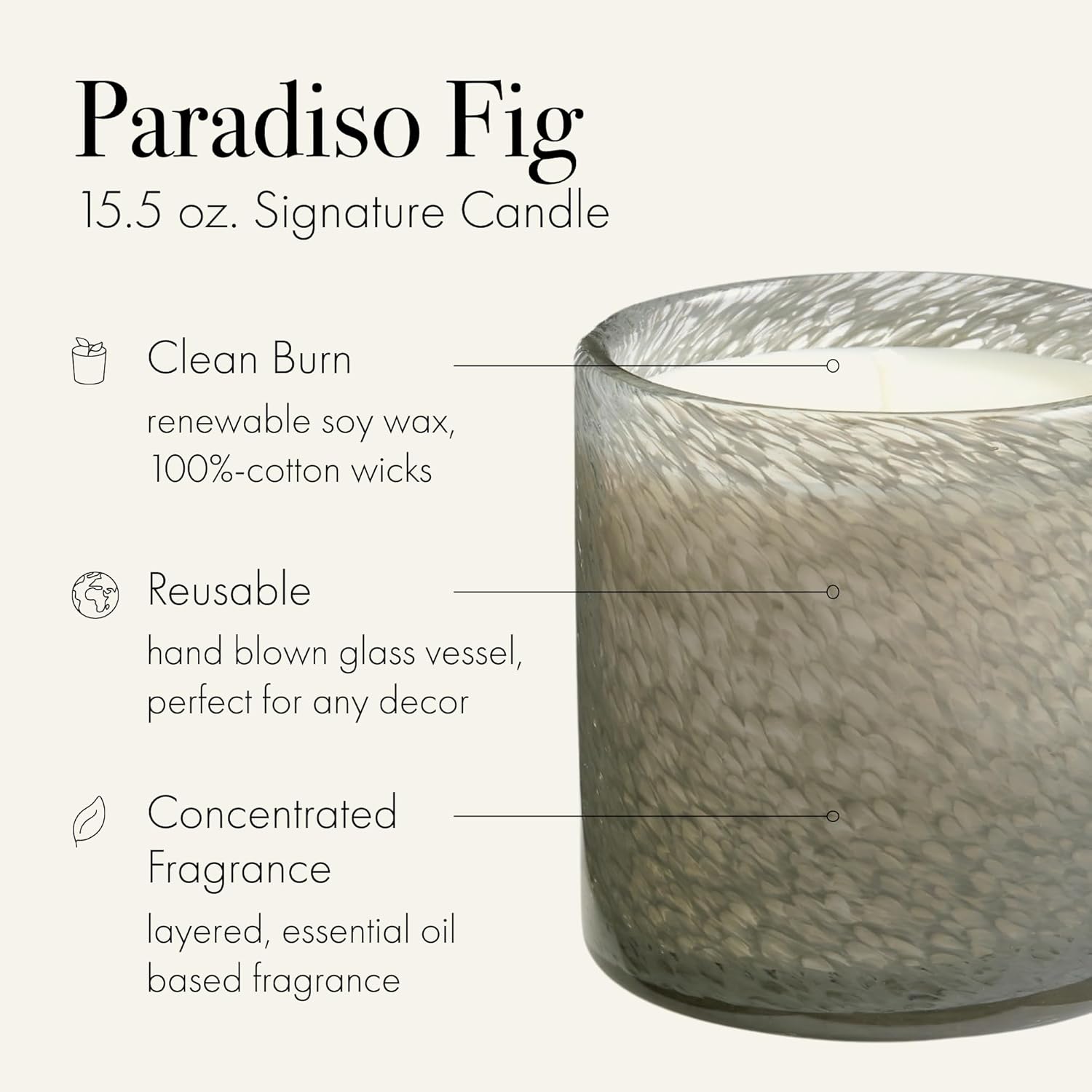 - HOUSE & HOME COLLECTION - Our House & Home collection transports you to a room, setting, or destination through the combination of scent, color, and design. The Paradiso Fig candle evokes the mood of being in a Villa.