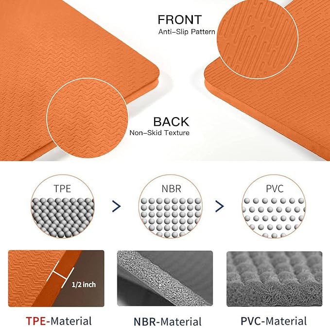 - Extra Large and Extra Thick: Our yoga mat measures 72"x 48" and boasts a thickness of 1/2 inch, offering ample room and superior comfort.Mat with a thickness of 1/2 inch can relief from joint pain during floor.