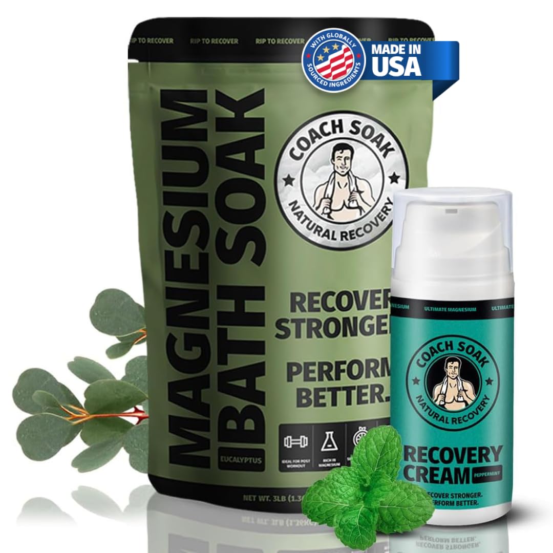 - Recovery Bundle for Fall: Elevate your seasonal wellness routine with the Coach Soak Recovery Bundle, featuring magnesium bath salts and lotion designed to support muscle comfort. Perfect for the transition into cooler weather, this bundle combines bath essentials for relaxation and skin nourishment
