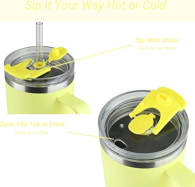 Drinco 40oz 30 oz Tumbler with Handle, Straw Lid, Insulated Stainless Steel Travel Mug Water Bottle Ice Coffee Cup For Cold and Hot, BigSur (40oz Lemon)