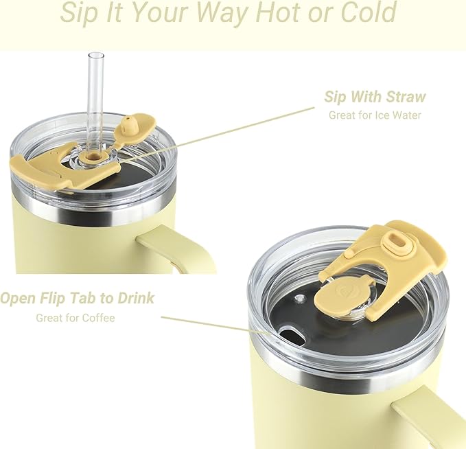 - ✅ VACUUM INSULATION: Our vacuum thermos insulated tumbler, coffee cup with splash proof lid keeps it sweat-free from the outside, no matter what you drink. The ultimate portability and comfort large mouth makes it easy to drink.