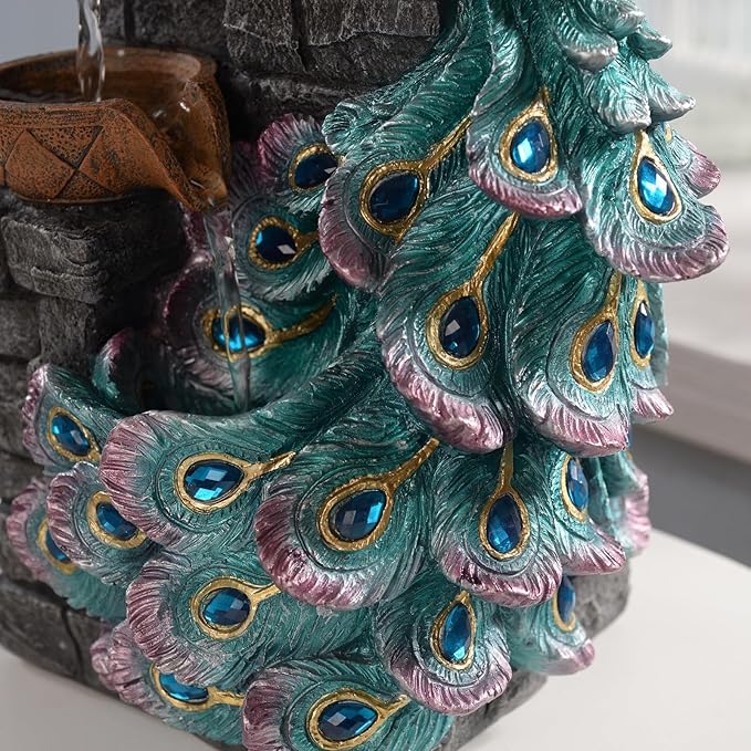 Tabletop Water Fountain Decor, Peacock with LED Glass Color Changing Globe,Relaxation Decorative Desktop Water Zen Fountain for Home/Office,Living Room Décor.13.78" Tall