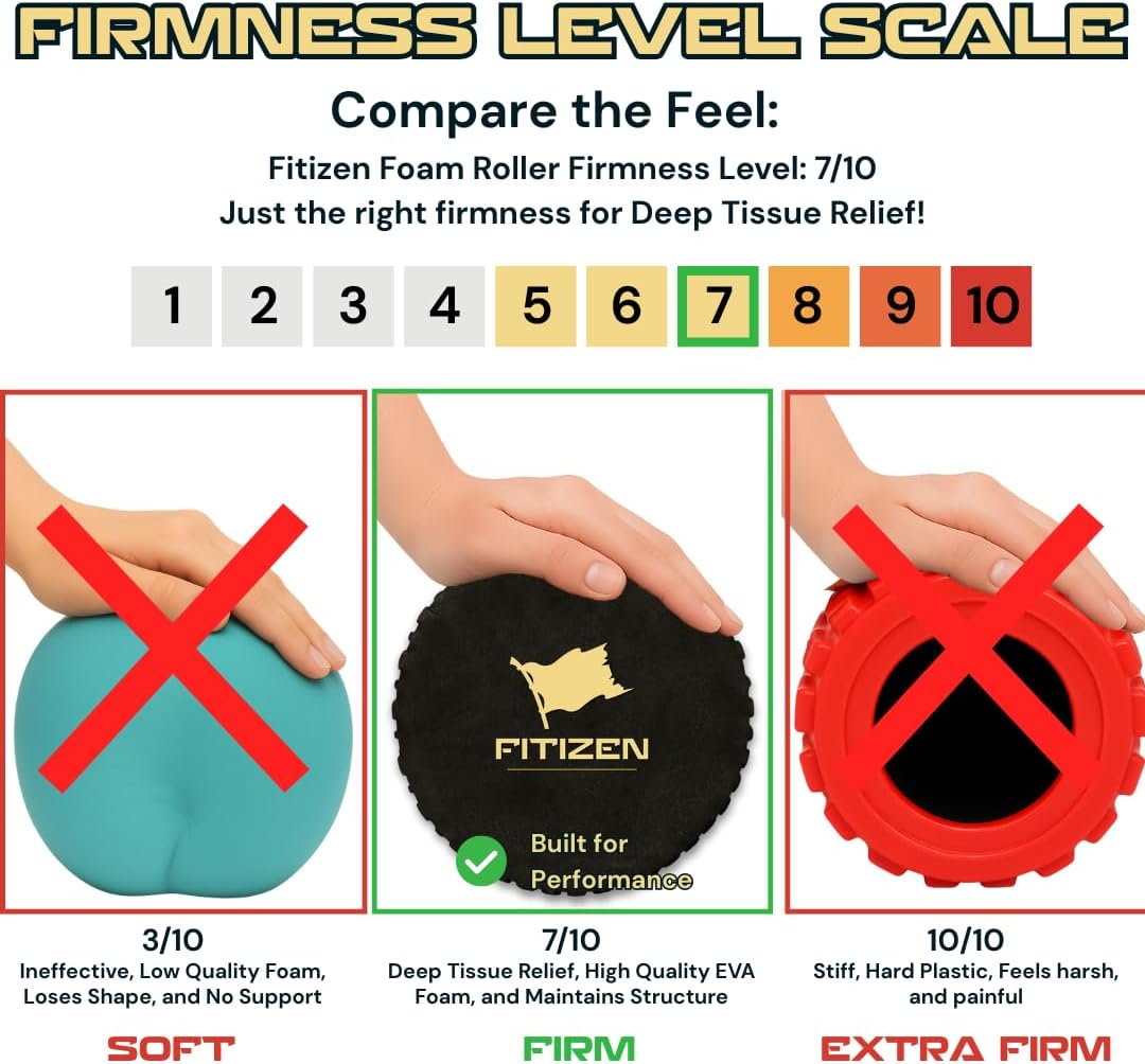 Fitizen Foam Roller – Muscle Massage Rehab Stiff Back Pain Physical Therapy Deep Tissue Firm Exercise Equipment Home Gym Stress Yoga Pilates for The Fit Citizen by FitNation