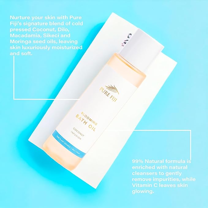 Pure Fiji Bath Oil, Conditioning Body Moisturizer with Natural Ingredients Bath Essential for Women Moisturizing Bath & Body Oil - Coconut (8oz/236ml)