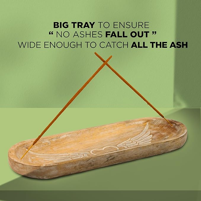 - NEW CONCEPT WOOD CARVING HOLDER : This Premium Wood Hand carved Incense Holder catches all the ashes, has an appropriate size (11 x 4 x 1.5 Inches).The Premium Rustic Finish of Inscent Holder makes this functional ornamental piece for your living room, workspace, or meditation room.