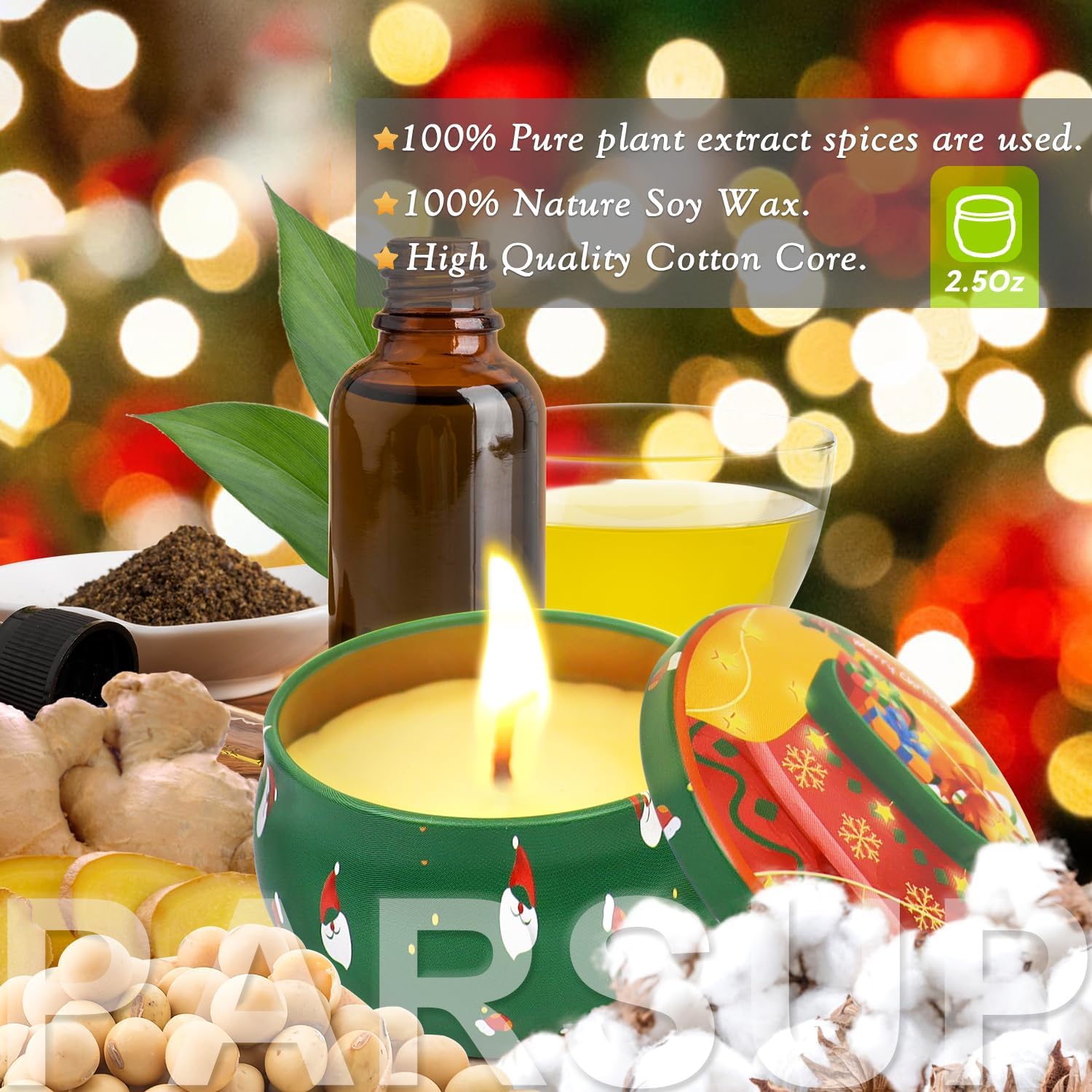 - 【12 CHRISTMAS-Y & COMFORTABLE FRAGRANCES】Our aromatherapy candle set come with 12 Fragrance Scents: Ginger Juice, Fennel, Freesia, Vanilla, Frankincense and Myrrh, Pumpkin, Cinnamon, Cedar and Berries, Mint Chocolate, Caramel Apple, and Oranges and Spices& Sweet Almond. Christmas scents improve Christmas atmosphere. Releasing your tension and promoting feelings of relaxation, preparing you for a better night's sleep. You can look at the bottom of the can to find out the scent of the candle.
