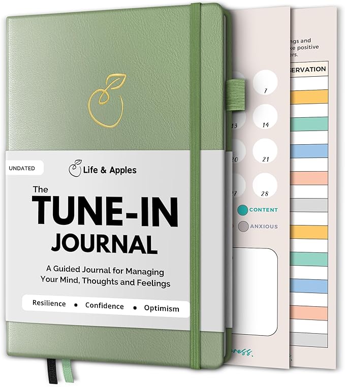 Life & Apples Journal for Women - Guided Mindfulness Journaling Notebook with prompts - for Improved Mental Health, Less Anxiety & Stress, More Positivity & Resilience - A5 Tune-in Sage Green