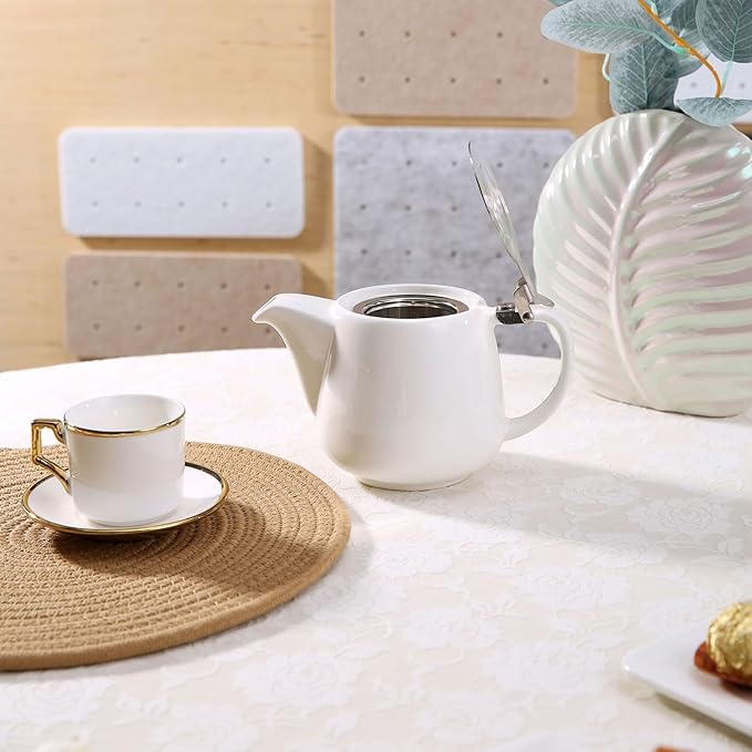 - CERAMIC TEAPOT WITH INFUSER - The teapot has a extra fine stainless steel tea infuser, perfect for varieties of teas, loose leaf tea, blooming tea, tea bags.