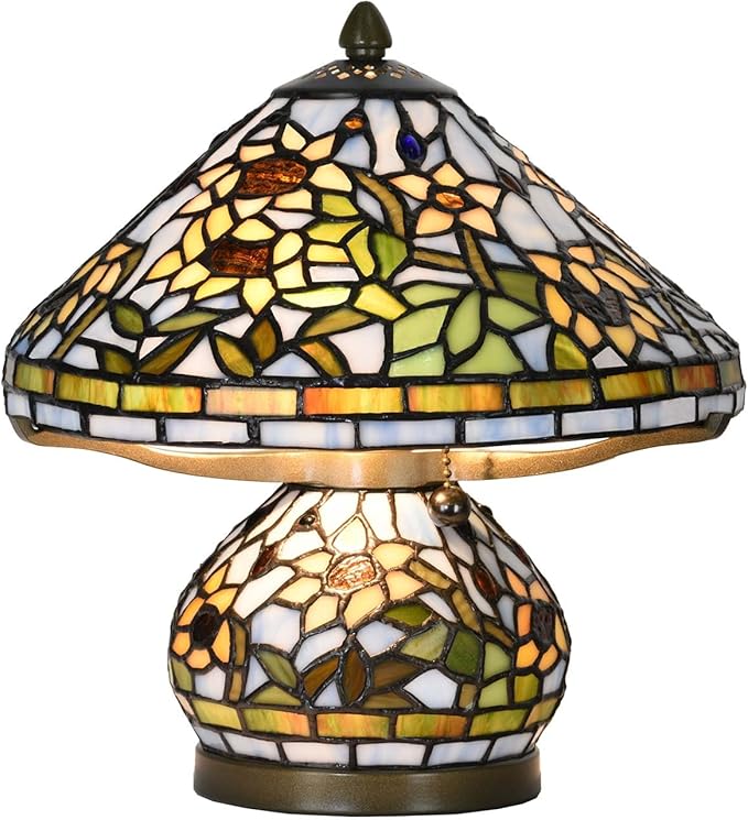 Bieye L10907 Tiffany Style Stained Glass Mushroom-Shaped Double Lit Table Lamp for Home Decor (10-inch, Yellow Sunflower)