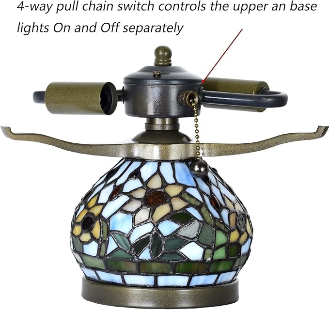 - Double Lit: Bieye Lamp comes with a 4-way pull chain and cord switches, which control the upper and lower lights turning on and off separately. You will see the amazing glow reflect on the tabletop when the glass base lights separately at night. TIP: The upper E12 bulbs are not included; the E12 bulb inside the glass base is included.