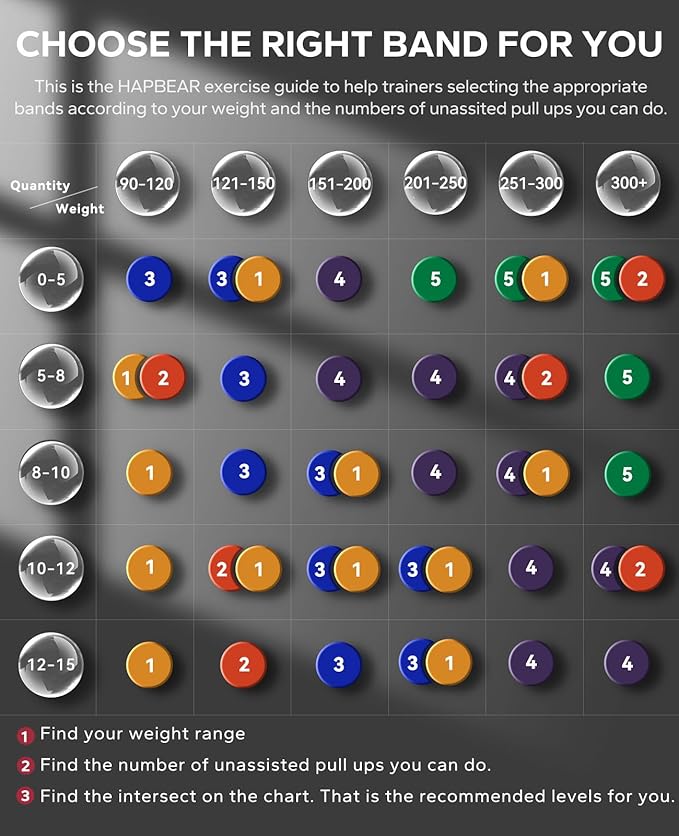 - [Versatile Resistance Bands for Varied Workouts]: Elevate your exercise routine with HAPBEAR's multifunctional pull up assistance bands. Ideal for pull-up assistance, enhancing push-ups, speed training, squats, shoulder presses, physical therapy, barbells, dumbbells, and more.