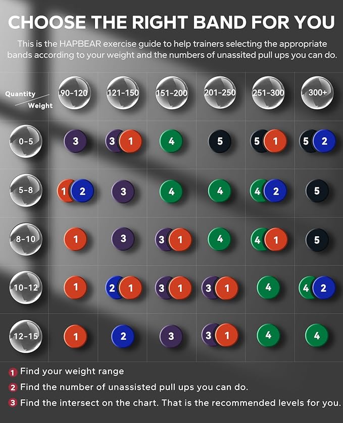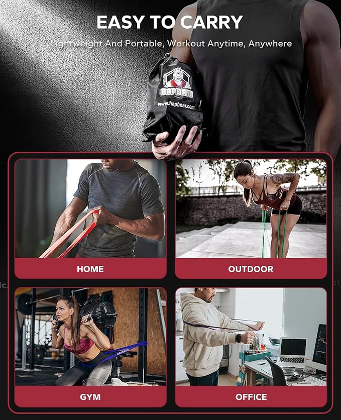 - [Versatile Resistance Bands for Varied Workouts]: Elevate your exercise routine with HAPBEAR's multifunctional pull up assistance bands. Ideal for pull-up assistance, enhancing push-ups, speed training, squats, shoulder presses, physical therapy, barbells, dumbbells, and more.