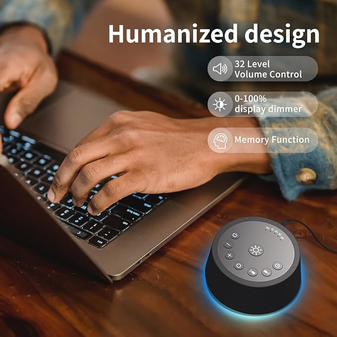 SoundLegend White Noise Sleep Sound Machines 30 Sounds 12 Colors Light 32-Level Volume 5 Timers for Home Travel Gift Adjustable Brightness Memory Function Compact