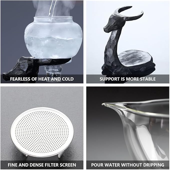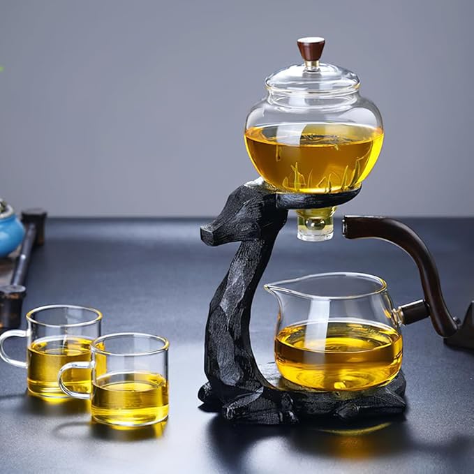 Lazy Kungfu Drip TeaPot, Heat Resistant Tea Set, Semi-Automatic Glass Teapot Suit for Magnetic Water Flow Wooden Glass Teapot Set