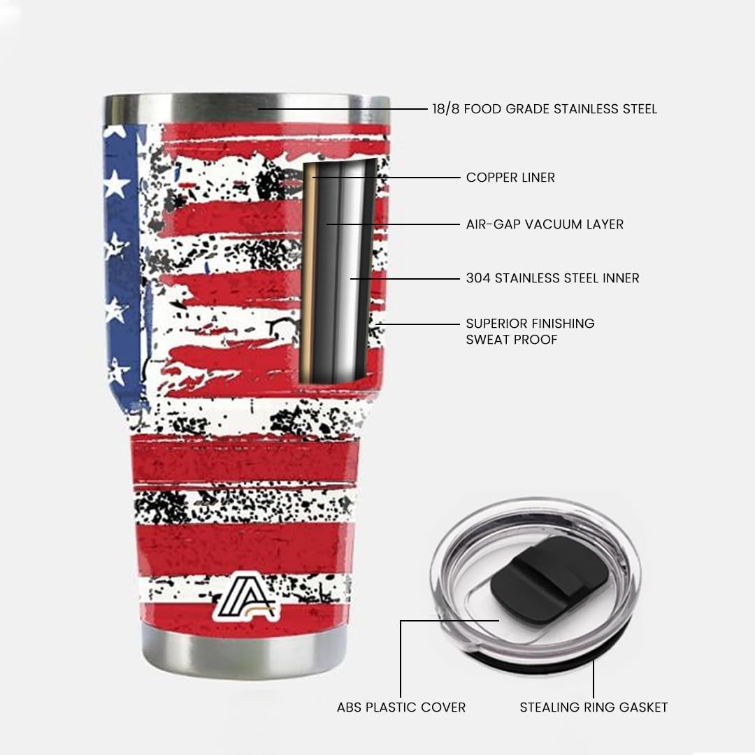 30oz Stainless Steel Tumbler - USA FlagTumbler with Lid and Straw, Double Walled Travel Mug Insulated for Hot & Cold Drinks, Vacuum Insulated Water Bottle for Home, Patriotic Gift