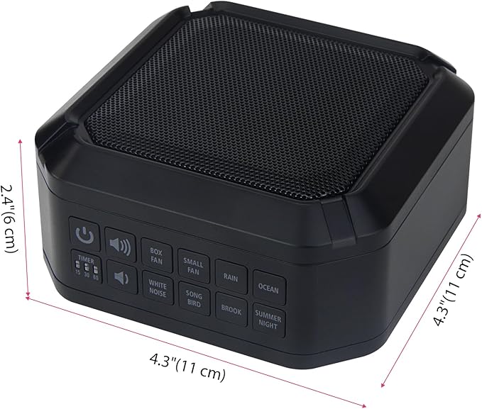 - [Compact Design & ON-THE-GO Comfort] โ Our portable noise machine with compact size (4.3โ x 4.3โ x 2.4โ), easily fits into your bag or suitcase for on-the-go convenience. You can place it in your bedroom, living room or office or bring it to anywhere for calming sounds.