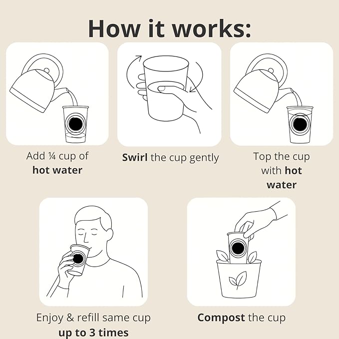 - Sustainable Tea Moments: Our cups are biodegradable and compostable, made entirely from natural plant fibers for guilt-free enjoyment. Ideal for work, travel, or home — simply add hot water and savor authentic organic tea that’s as kind to the planet as it is to your senses.