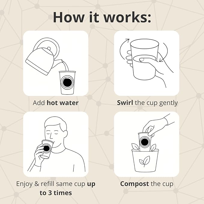 - Sustainable Tea Moments: Our cups are biodegradable and compostable, made entirely from natural plant fibers for guilt-free enjoyment. Ideal for work, travel, or home — simply add hot water and savor authentic organic tea that’s as kind to the planet as it is to your senses.