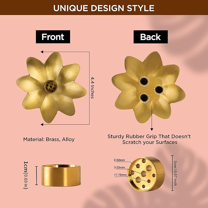 - MATERIAL/SIZE :These incense holders are made of high quality brass material, solid and durable for long-term usage.Package contains 3 Pack Flowershaped Incenseburner with detachable Stick Holder. Flower Diameter: 4"/10cm,Detachable Stick Holder Diameter 1.4"/3.5cm