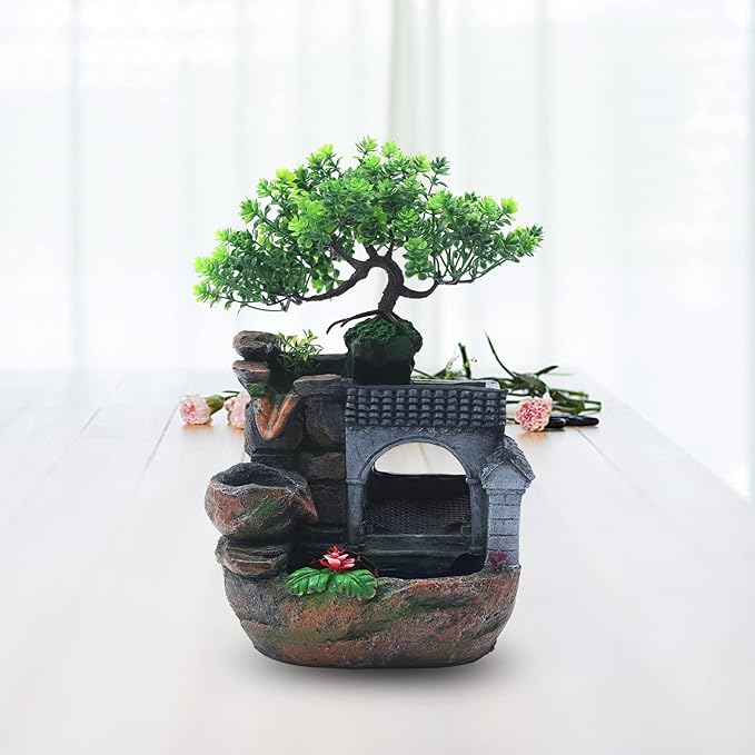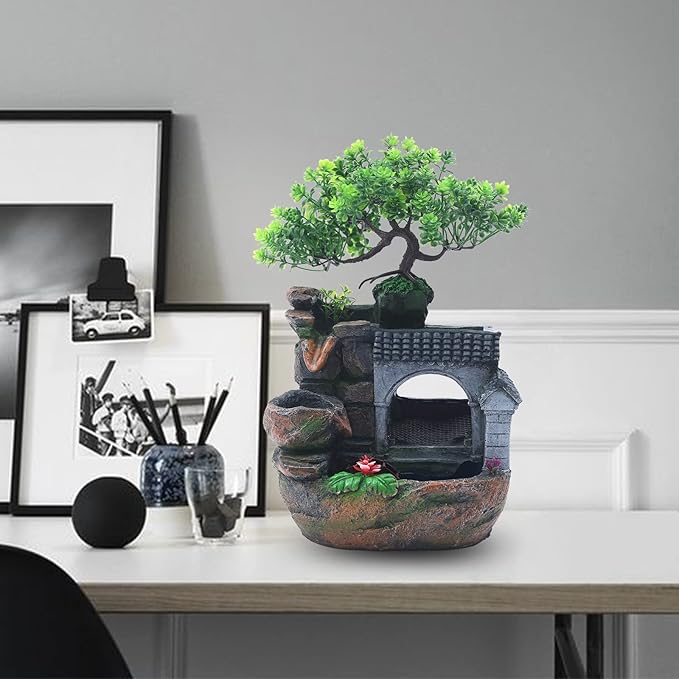 - 【DELIGHTFUL GIFT】--- No gift idea? Our waterfall fountain is a great table decoration and enchants any room. It's THE surprise for anyone who needs a little green in their life. A stylish decoration for desk decoration, TV cabinet, bedroom, study, office, light weight and easily position.