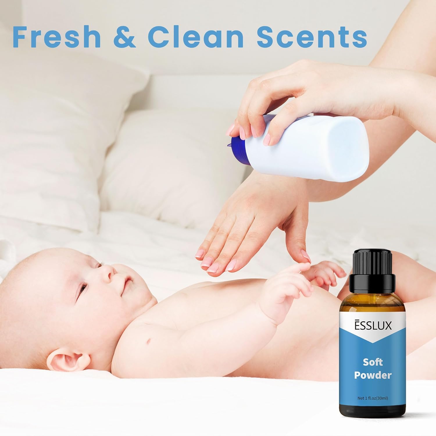 Soft Powder Fragrance Oil - ESSLUX Essential Oils for Diffuser, Candle Soap Making Clean Fresh Scents, Aromatherapy Scented Massage, Perfume for Humidifier Home Fragrance, 1 fl oz