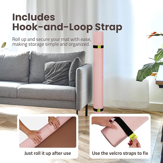 - 【Easy Cleaning & Convenient Storage 】Thanks to its closed-cell material, our large exercise mat prevents sweat absorption, making it easy to clean and maintain for long-term use. Additionally, it comes with velcro straps for hassle-free storage