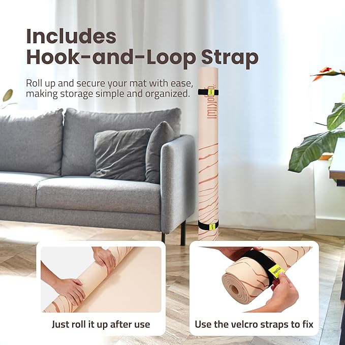 - ✅ Convenient Storage Made Easy - Includes a durable hook-and-loop strap for quick roll-up and secure storage. Keep your matt organized and portable for hassle-free use at home, in the studio, or outdoors.