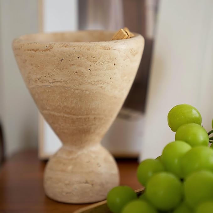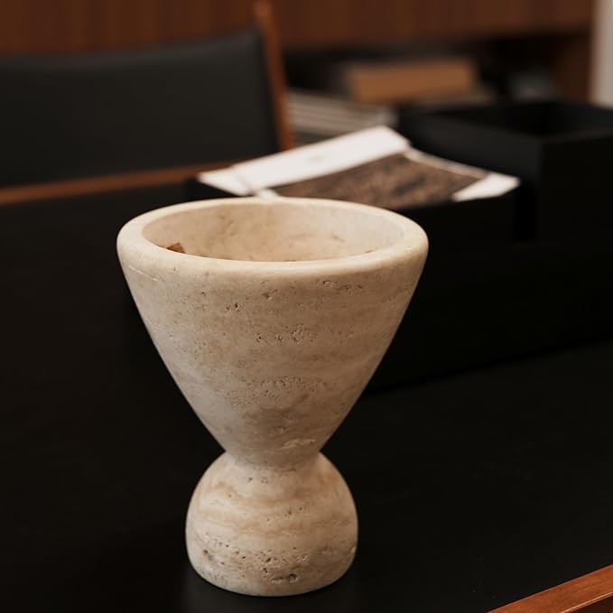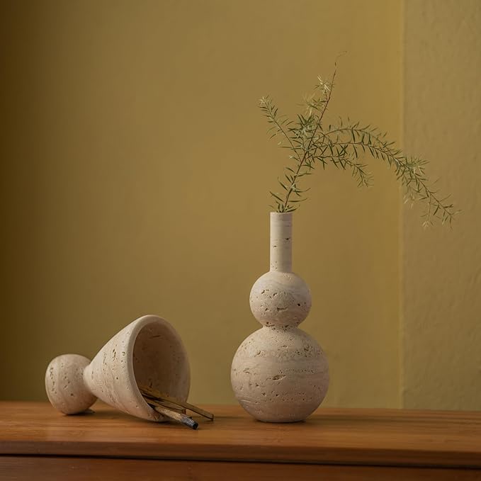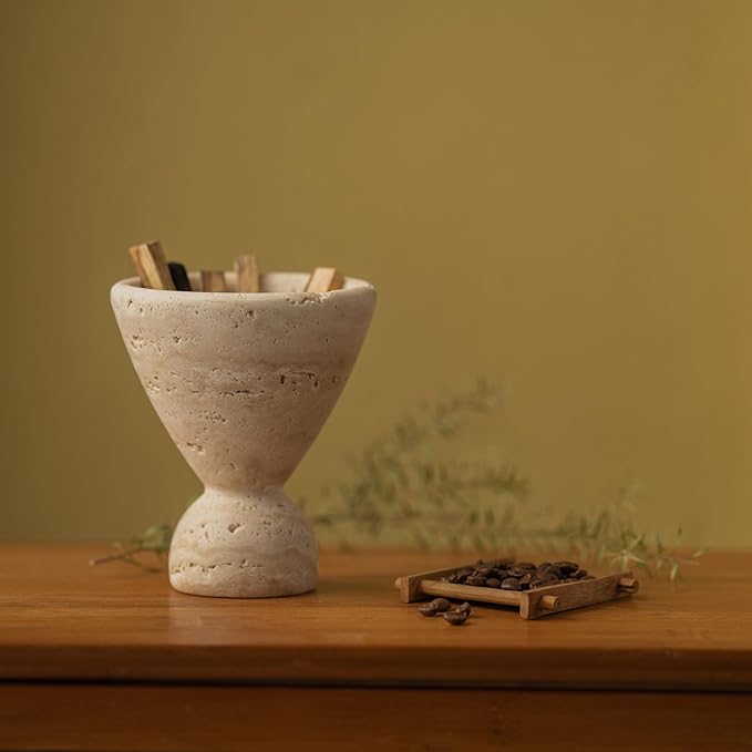 - Natural Travertine Incense Burner & Vase - Crafted from 100% natural travertine stone with distinctive irregular holes, this unique incense burner maintains its authentic appearance without artificial filling. Each piece is meticulously hand-made by skilled artisans through a process of raw stone cutting, geometric shaping, and fine grinding, ensuring every holder is one-of-a-kind