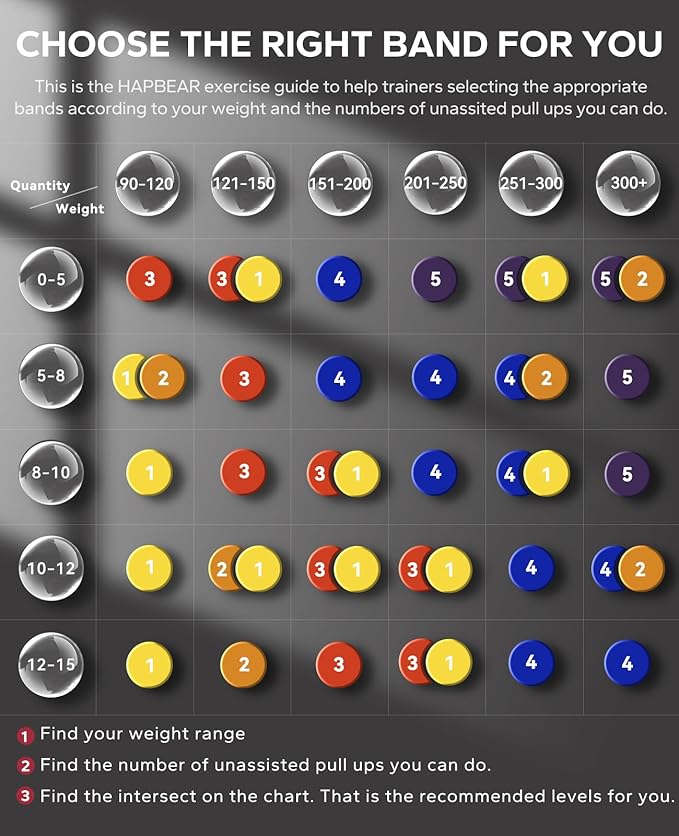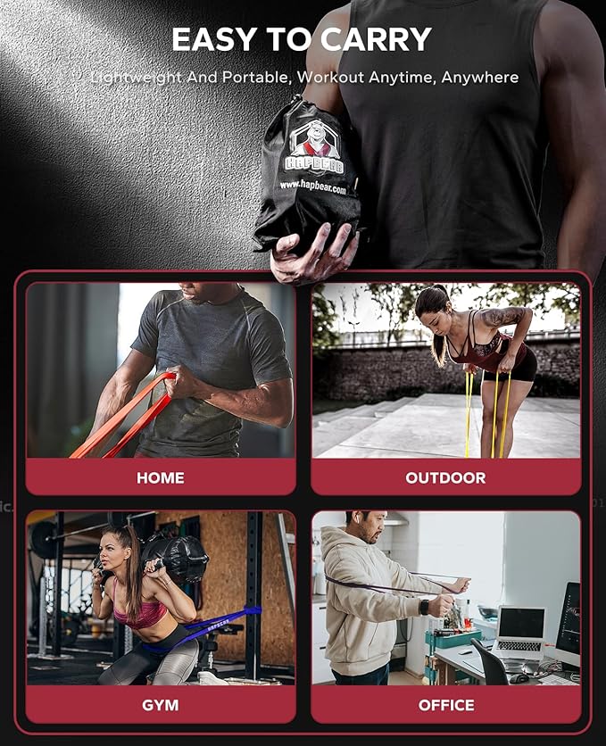 - [Versatile Resistance Bands for Varied Workouts]: Elevate your exercise routine with HAPBEAR's multifunctional pull up assistance bands. Ideal for pull-up assistance, enhancing push-ups, speed training, squats, shoulder presses, barbells, dumbbells, and more.