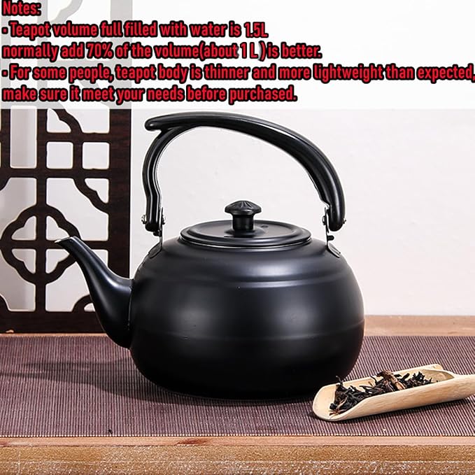 - NICE OUTLOOK: The teapot is study construction, painted in black color. Come with thick and high temperature resistant handle, comfortable to hand hold. Great for Tea party, social gatherings, used at home, hotels, restaurant.