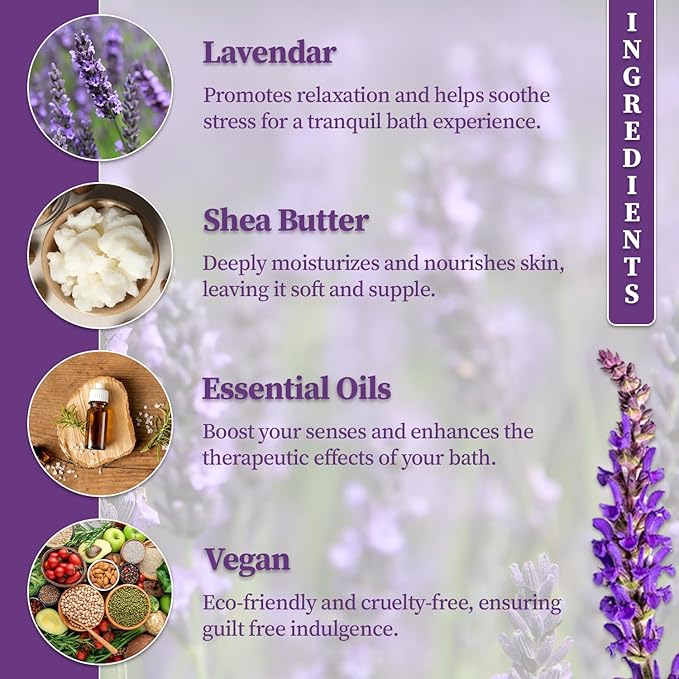 - Ideal Gift for All Occasions: Perfect as a wife birthday gift, mom birthday gift, or girlfriend's birthday gift. Great for Mother’s Day, a thoughtful bridesmaid gift, or soothing pregnant women gifts she'll truly appreciate. Best bath soaks for women, girlfriend gift ideas, pregnant wife gifts, organic gifts for women, destress gifts for women. A perfect lavender bubble bath.