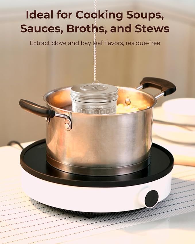 - Wide Application: Comes with 2 loose leaf tea infusers, one for making tea, the other one for cooking. With Extended 7.7'' chains with hooks, the large tea steeper can catch securely on any rim of large pitcher, pan, pot, tea kettle or teapot. [Notice]: 3.3" diameter of the lid. We have 4 various sizes options for different brewing applications. Please check if the large tea strainer fits your containers' opening.