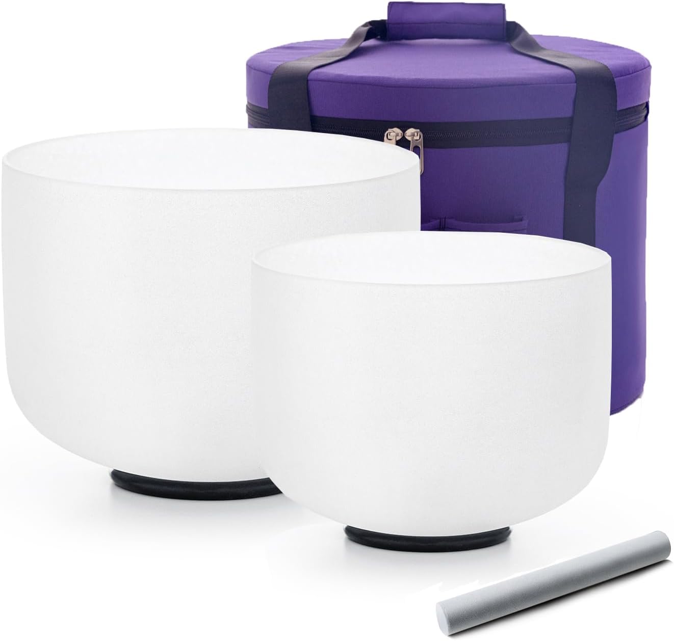 - 1. 3 pcs singing bowls from 8 inch to 10inch, Including8"F 10"C . The crystal singing bowl set comes with a heavy duty carrying case and one suede strikers ,2pcs O-rings .