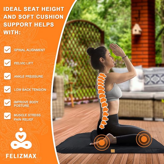 - 🧘Extra Comfort: our meditation mat is filled with 100% organic cotton padding. It’s puff and soft. Our mat can provide you extra comfort during your meditation session, so that you can fully enjoy your time.
