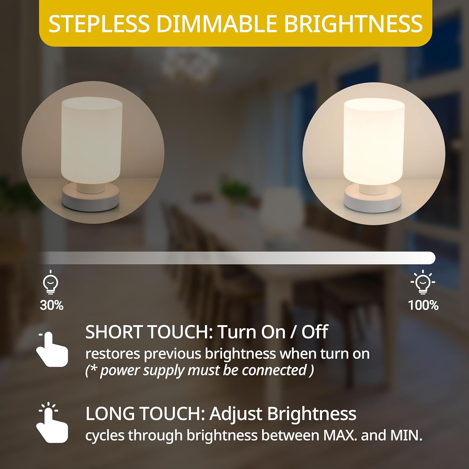 Touch Bedside Lamp, Mini Stepless Dimmable Table Lamps for Bedroom for Night Stands, Small Desk Lamp with Brightness Memory, USB Charging Ports, Warm LED Bulb, White, Cylindrical Shape, 1 Set