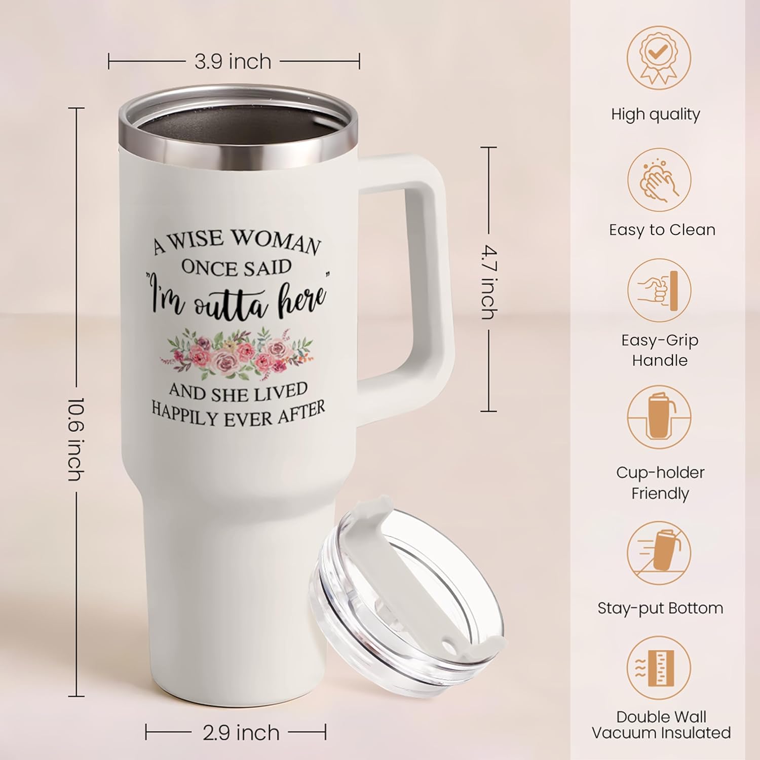SANDJEST Retirement Tumbler 40oz Stainless Steel with Handle and Straw - Happy Retirement Gifts for Coworkers & Colleagues