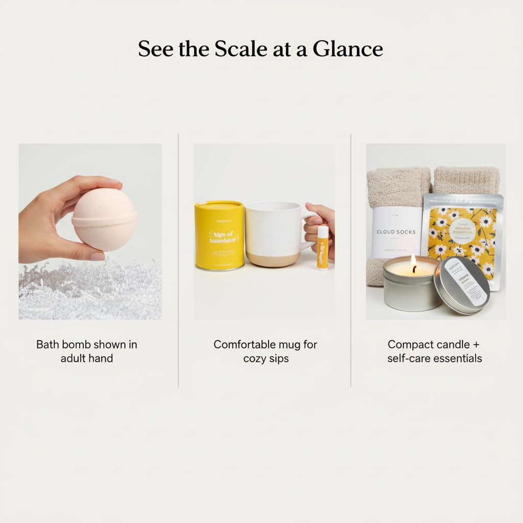 - Complete Self Care Gifts For Women - A thoughtful gift to soothe the soul! Shower a loved one with sunshine with organic herbal tea, fluffy cloud socks, ceramic mug, citrus bath bomb , beeswax lip balm, a fun floral scrunchie + a sending sunshine card