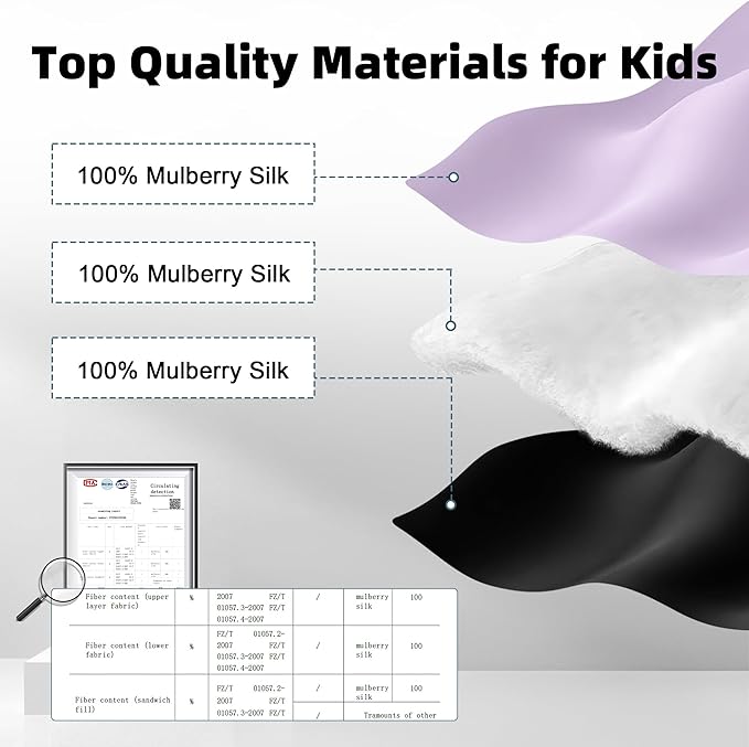 - 【High-quality 100% Mulberry Silk】This kids sleep mask is made of pure natural 100% hypoallergenic mulberry silk and filled with mulberry silk also. Is extremely gentle to children's eye skin, ensuring that the child is exposed to the safest and softest material while sleeping and avoiding irritation to the child's skin